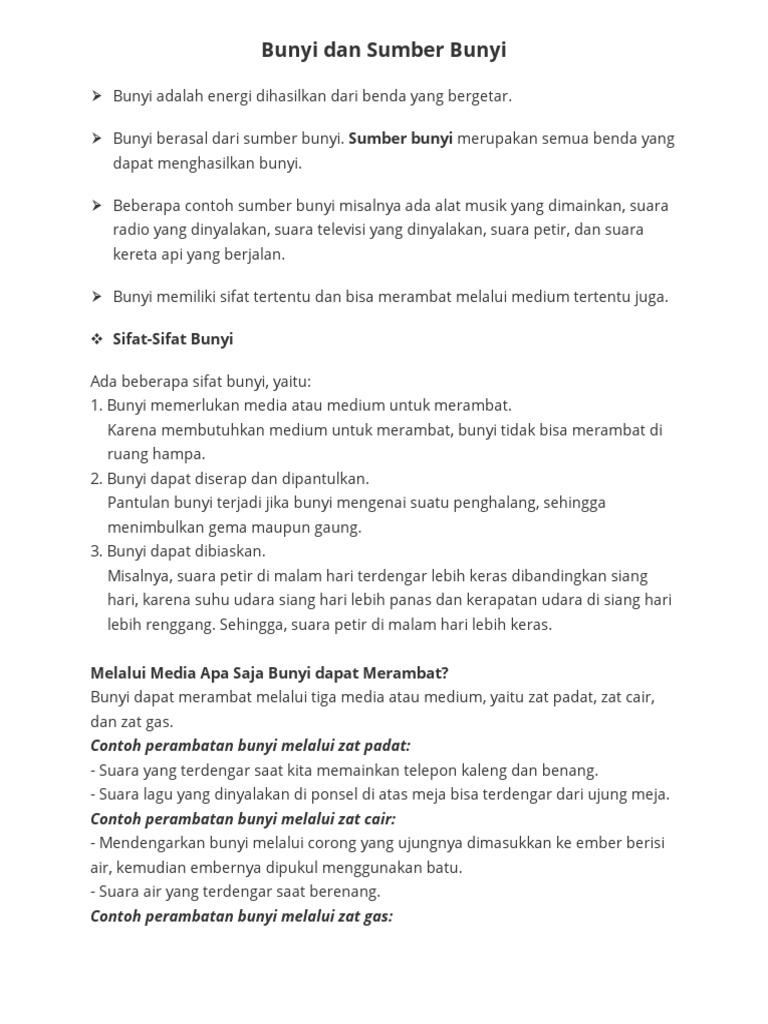| Judul Surah: Bunyi Dan Sifatnya Ringkasan Materi Tvri 12 Mei Kelas 4 6 Sd Halaman All Kompas |