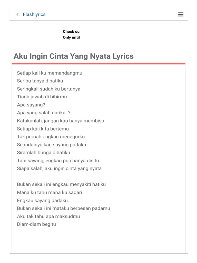 | Judul Surah: Aku Ingin Cinta Yang Nyata Lirik Sekali |